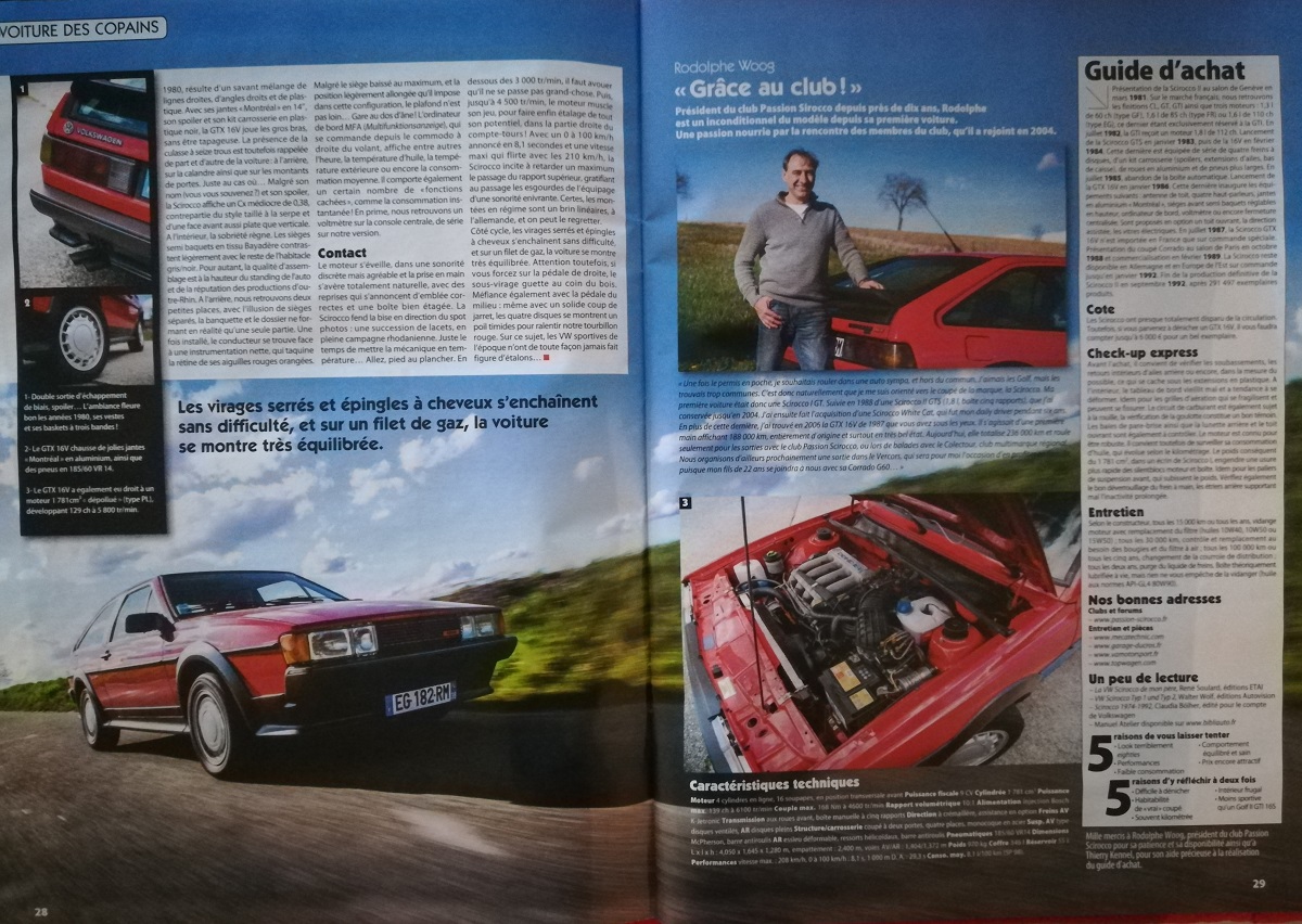Un article très intéressant sur la Scirocco GTX 16V, à lire absolument.