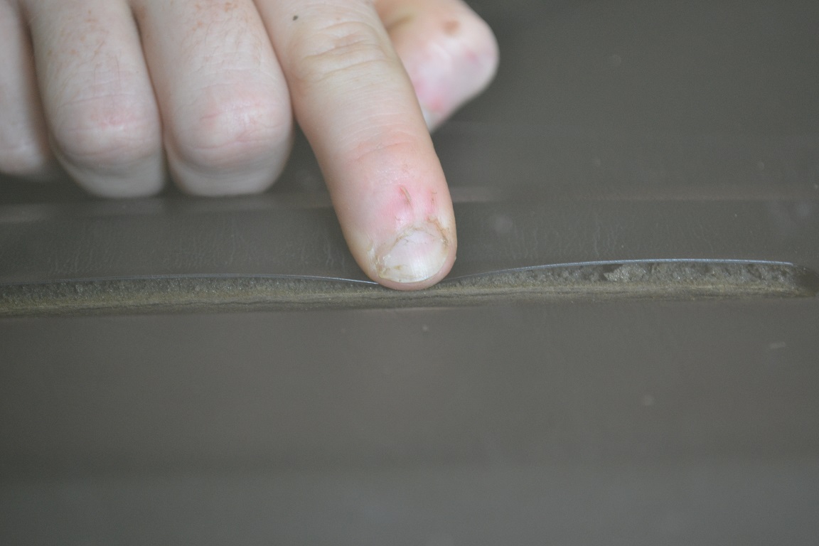 Entouré de jaune c'est une vis qui évite la déformation du Sky (ce qui crée la fissure), entouré de pointillé rouge c'est la fissure et le pointillé représente une découpe (la découpe en arrondie évite à la fissure de continuer son chemin comme pour le cuir), et le grand cadre gris représente une grande découpe qui peut être réalisée tout autour des bouches d'aération. Je vous l'accorde c'est barbare mais après réflexion...