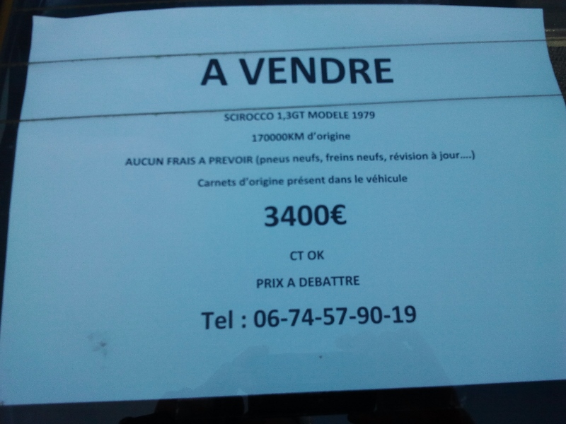 Inscription : Mardi 12 Mai 2015 9:15 Message(s) : 75 Scirocco: Scirocco 2 1.6l carburée Région: Midi-Pyrénées |