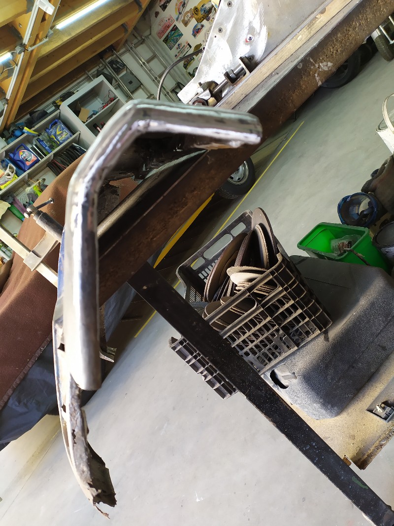 je n'avais pas grand chose à perdre en commençant cette restauration, c'est sûr elle était bonne pour la ferraille mais vu que ça progresse pas trop mal je continue, aujourd'hui pose d'une rustine, la bordure qui va sur la contre aile avec façonnage du Profil