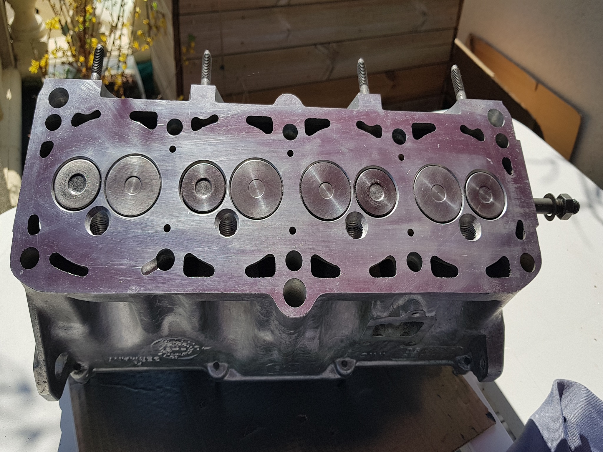 Soit je mets la culasse de gti sur laquelle il y as déjà les bouchon d'injecteurs, l'usinage sièges et soupapes est fait et le travail des conduits aussi, reste à lui mettre l'arbre à came.
